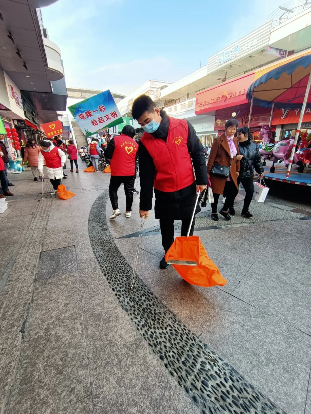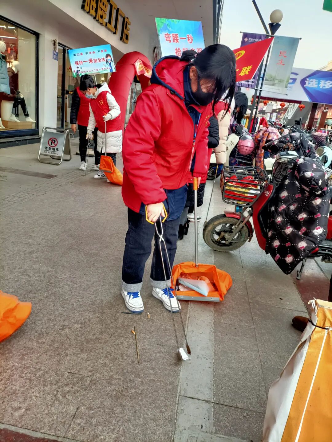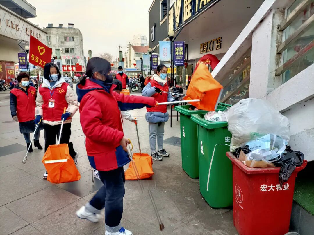 “弯腰一秒捡起文明”活动今天下午在国庆步行街进行,很多高中学生和家长参加了活动,今天的活动副会长张兰英负责