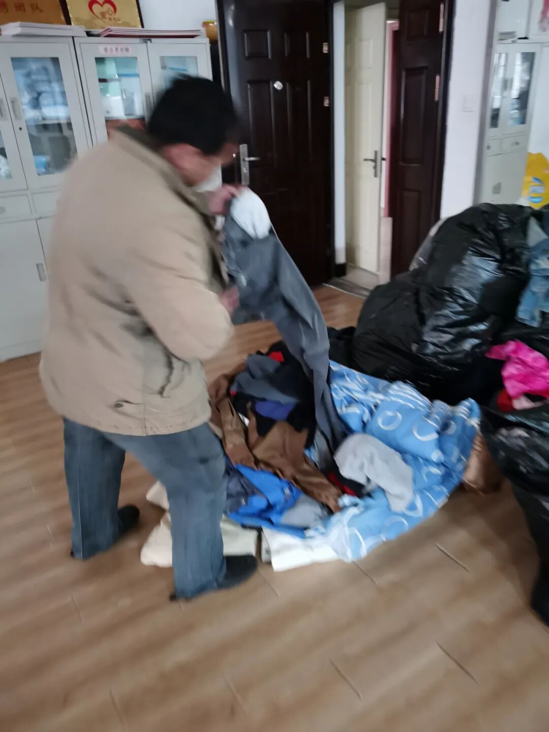 昨天爱心人士捐来的衣服正好适合他穿,他说他经常到我们义工联爱心衣柜找衣服穿,因为他根本不会去买衣服,对他来说,买衣服穿太奢侈了!