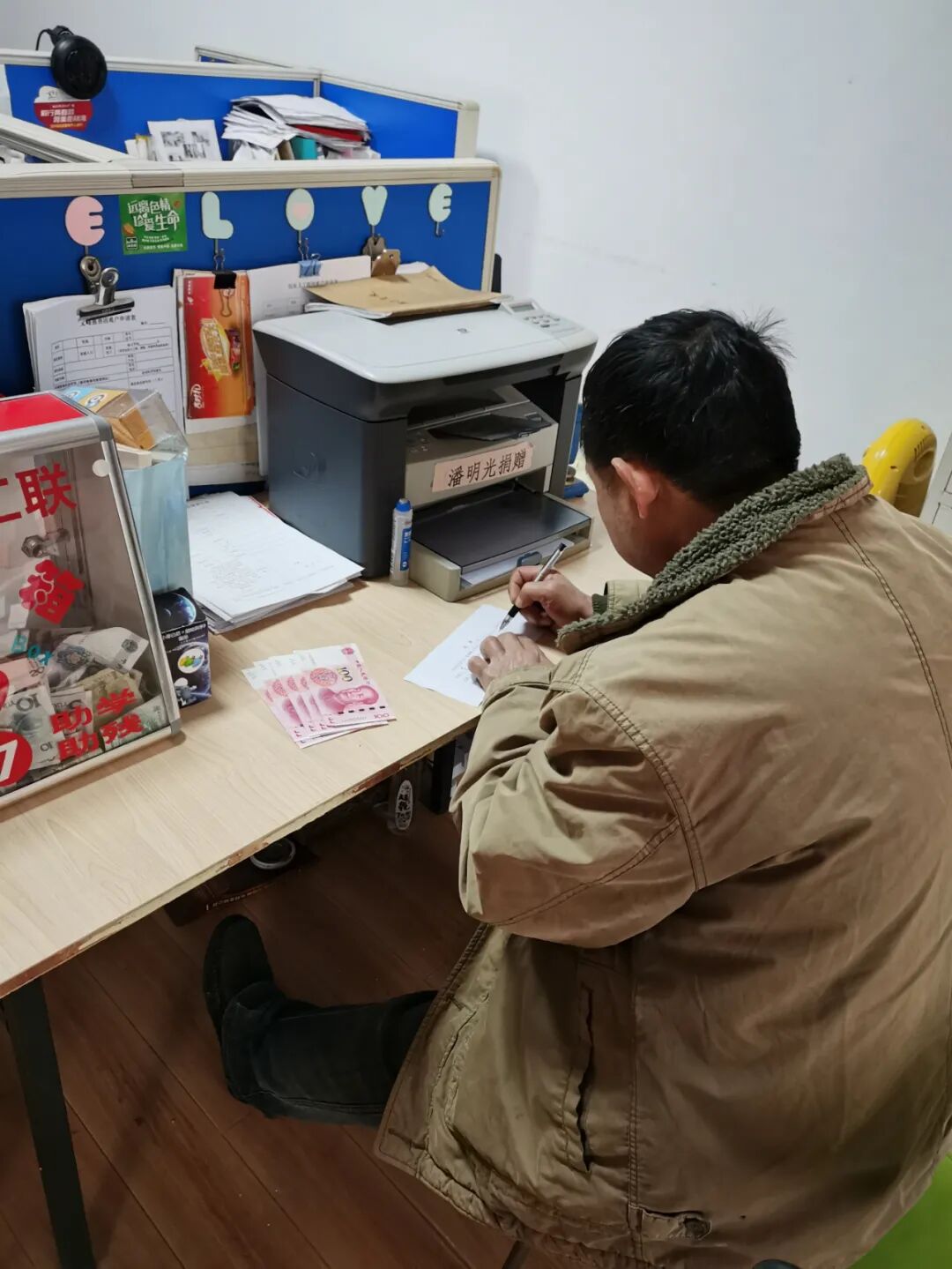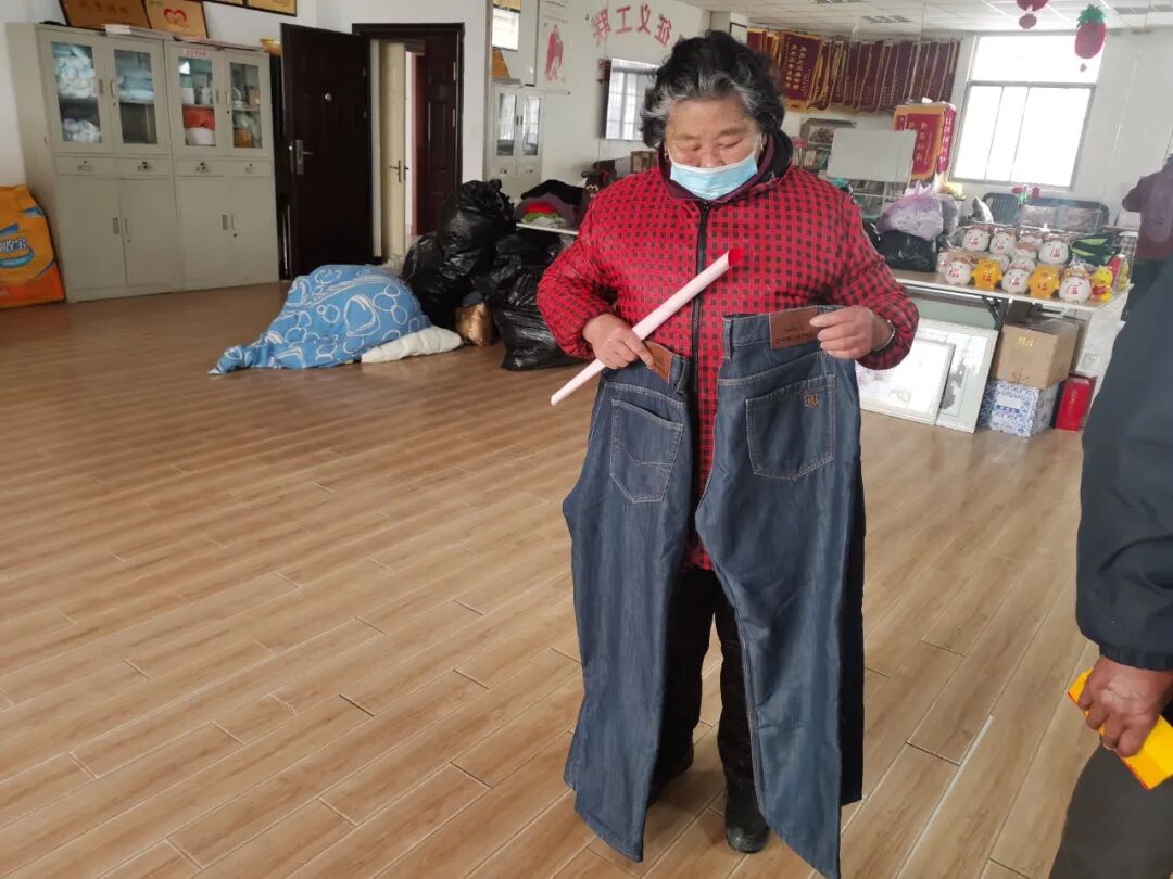 又一个义工联长期帮助的家庭来义工联送感谢信,顺便为孙子领取了两条新的牛仔裤