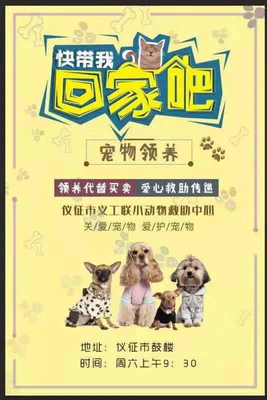 仪征市义工联小动物救助基地将于3月13日(周六)在鼓楼广场举办第四届‘’领养代替购买‘’活动以领养代替购买,请给可爱的它们一个温暖的家!