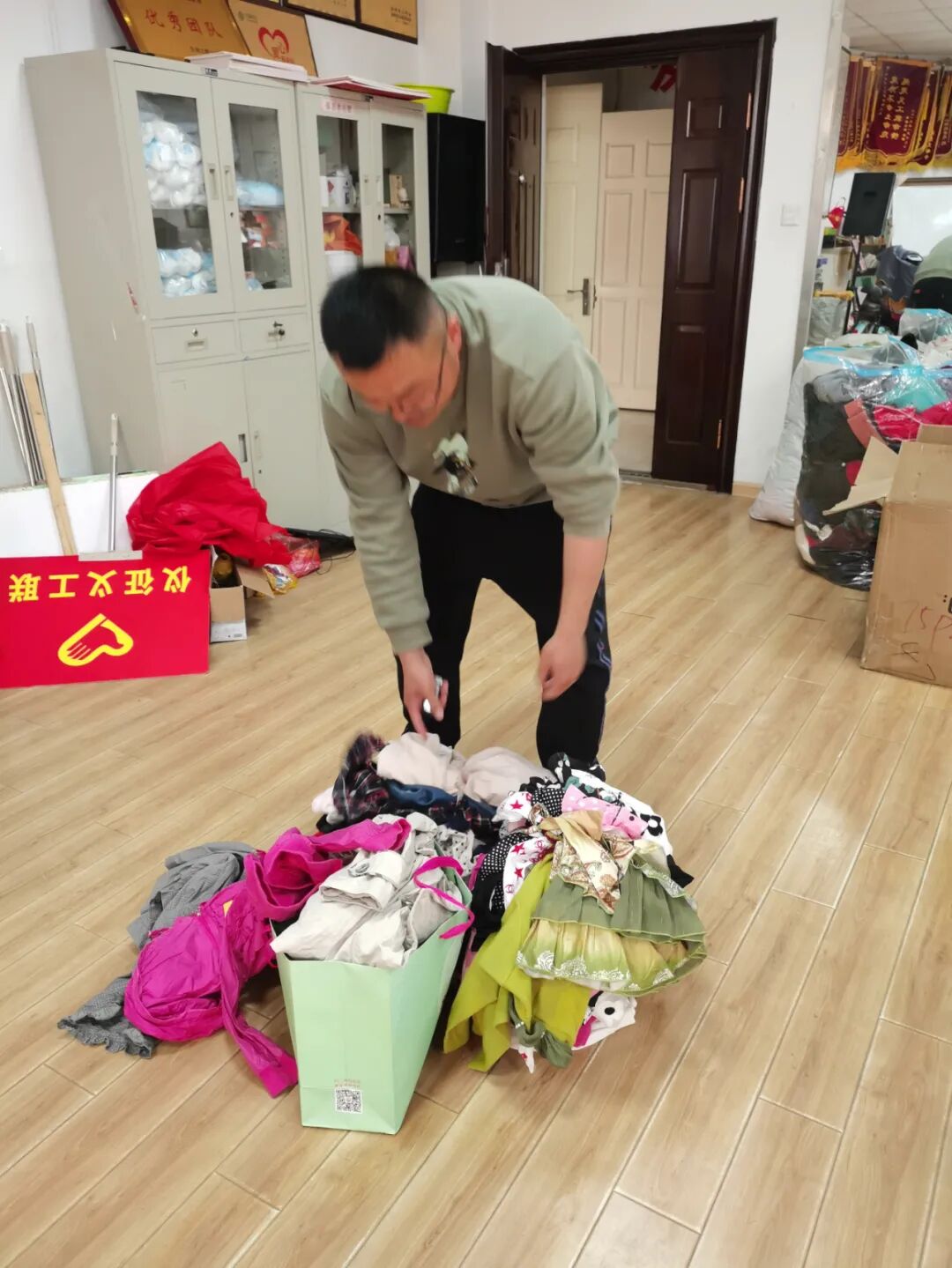 我们整理快结束时又来了一个爱心人士俞先生捐衣服