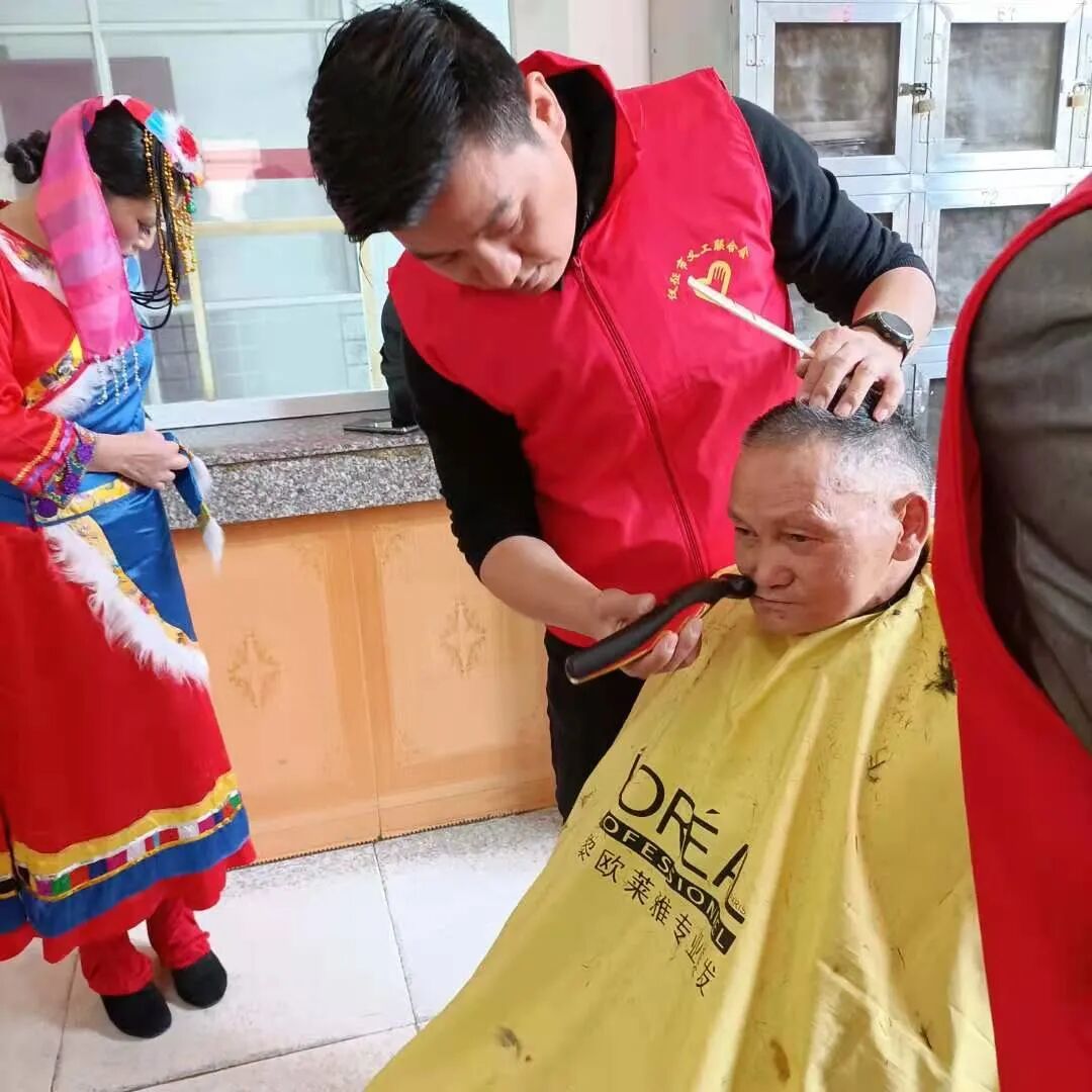 义工俞少云、张正金、潘良红给老人们细心的理发,刮胡须