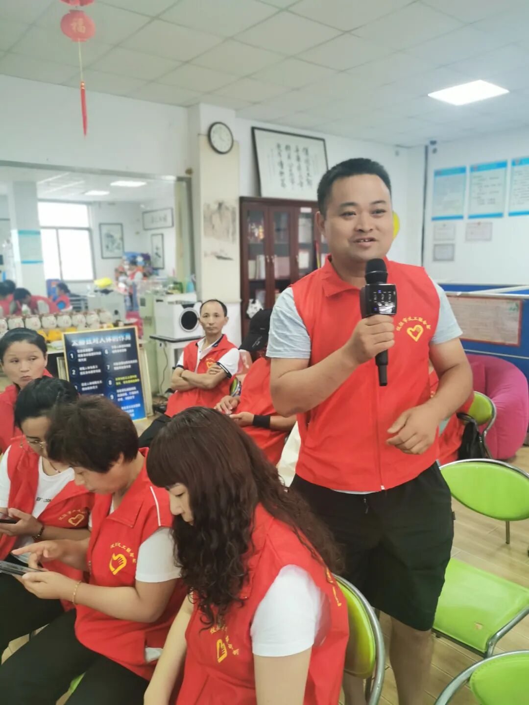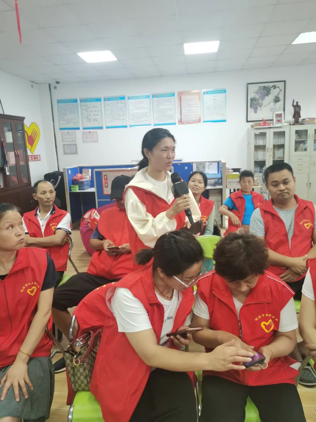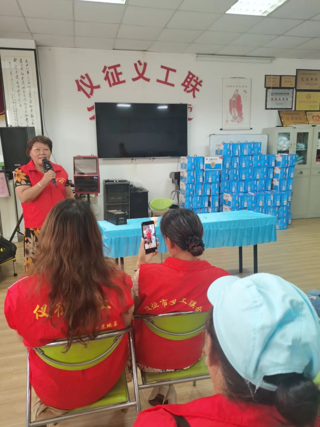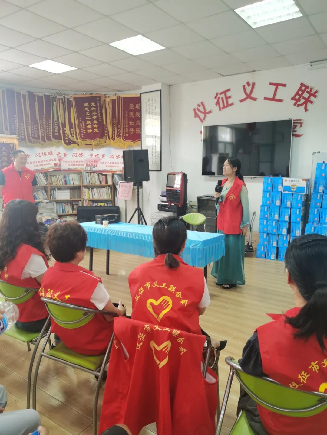 义工联会长戴成红给义工做义工培训